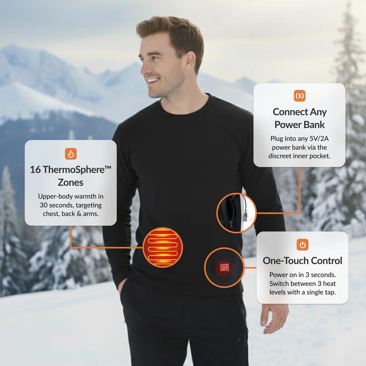 ThermoSphere™is the engine behind every ToastyBody top.16 ultra-thin, flexible carbon panelsdeliver fast, even warmth, without adding bulk. Built right into the fabric, it feels like part of you, not something you're wearing.